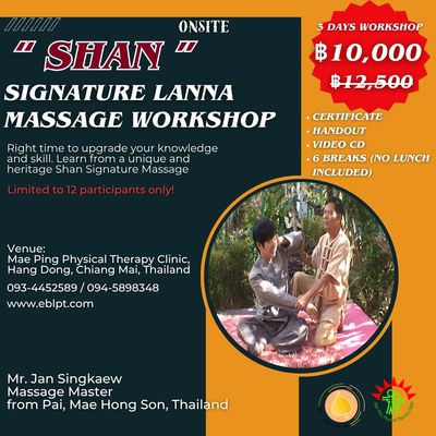 Dive deep into the world of traditional Shan Signature Massage in this exclusive three-day workshop, led by the esteemed Master Jan Singkaew from Pai, Mae Hong Son, Thailand. Held at the serene Mae Ping Physical Therapy Clinic in Hang-dong, Chiang Mai, this workshop offers a rare chance to learn directly from one of Thailand’s most respected massage masters.
